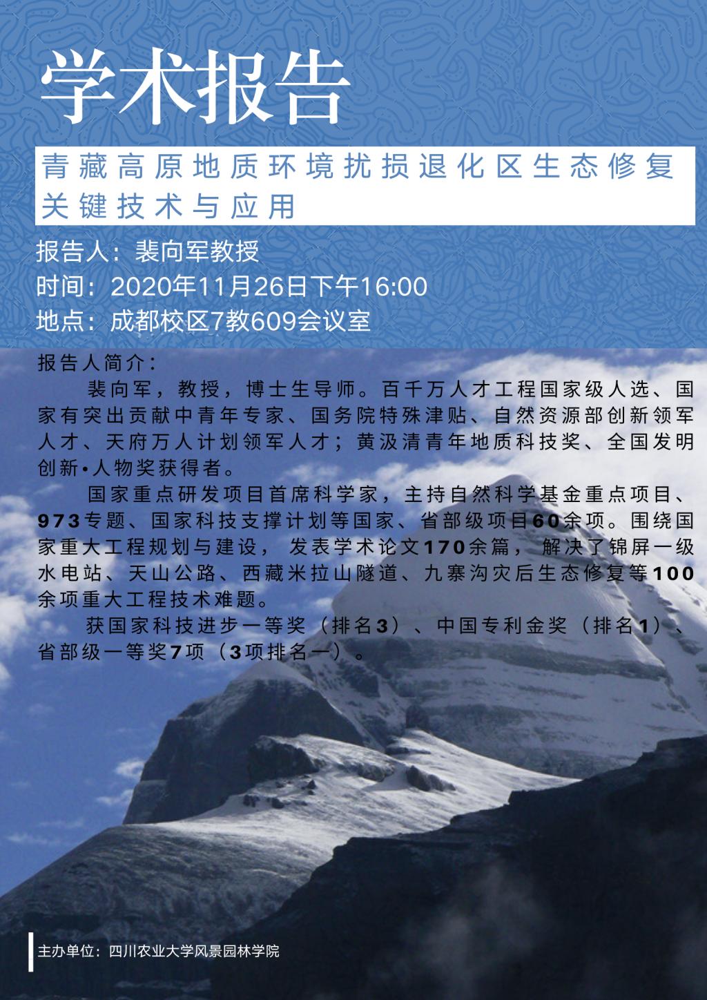 青藏高原地质环境扰损退化区生态修复关键技术与应用