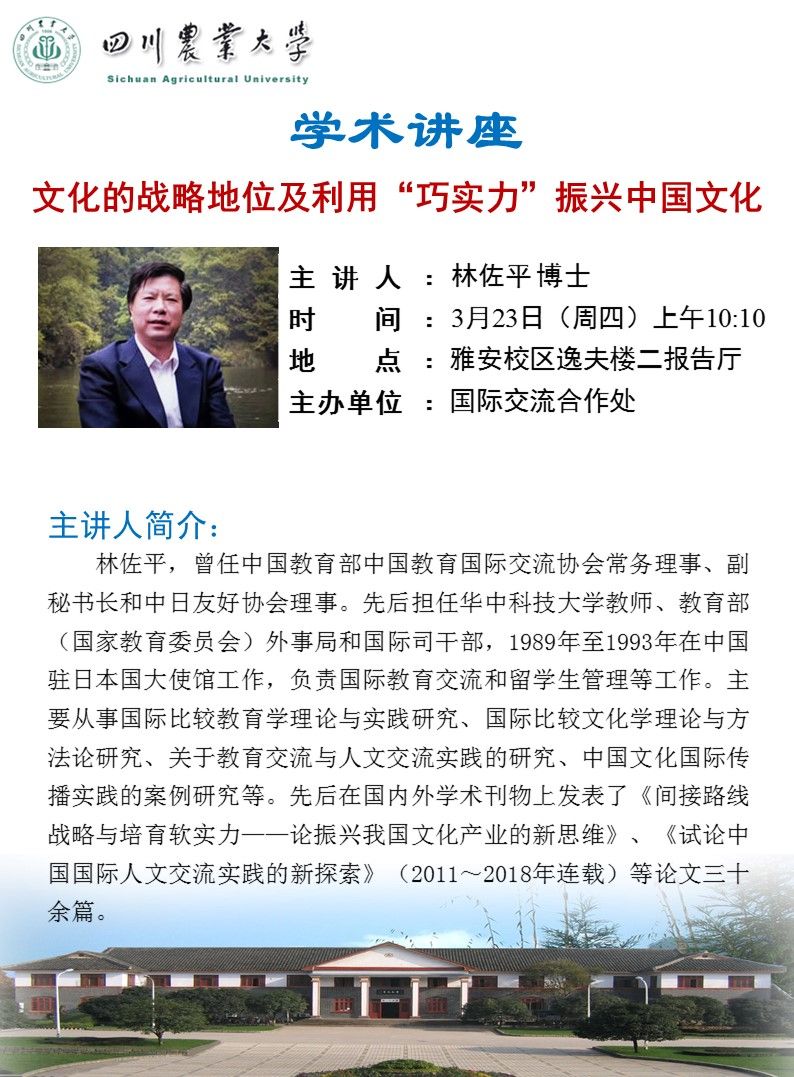 学术讲座—文化的战略地位及利用“巧实力”振兴中国文化
