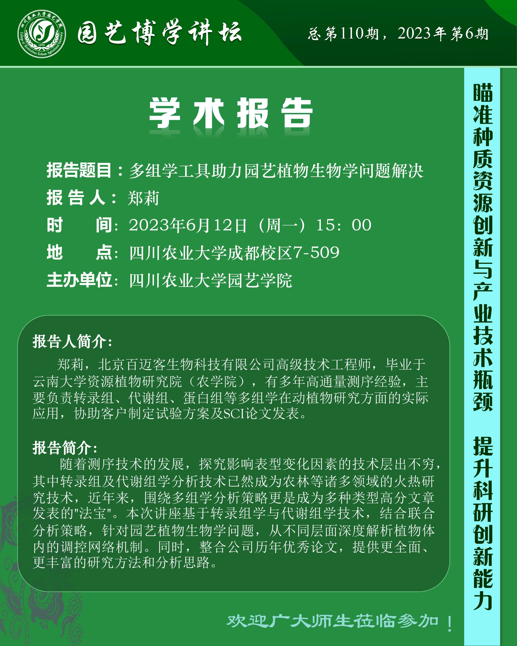 园艺博学讲坛—多组学工具助力园艺植物生物学问题解决