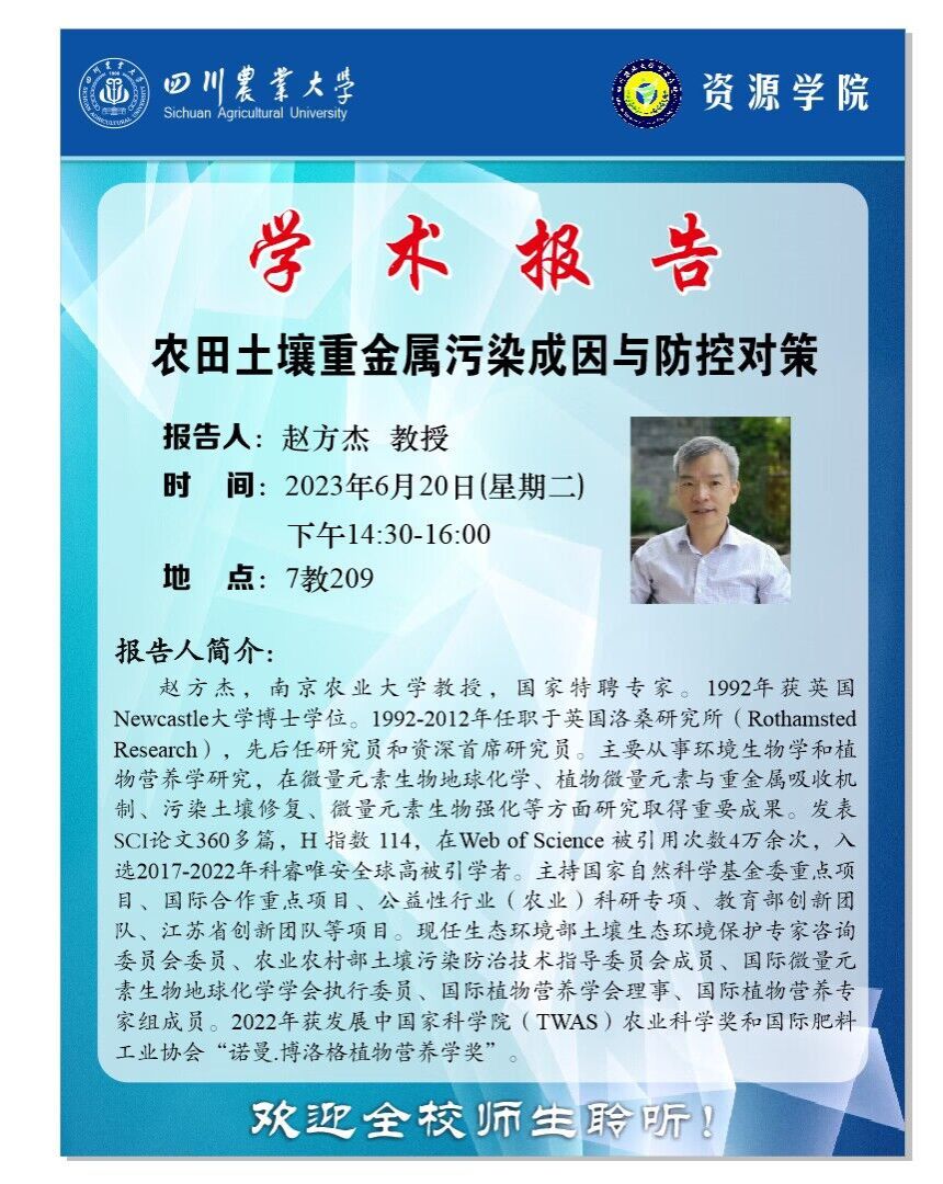 学术报告—农田土壤重金属污染成因与防控对策
