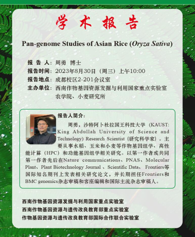 学术报告—Pan-genome Studies of Asian Rice (Oryza Sativa)