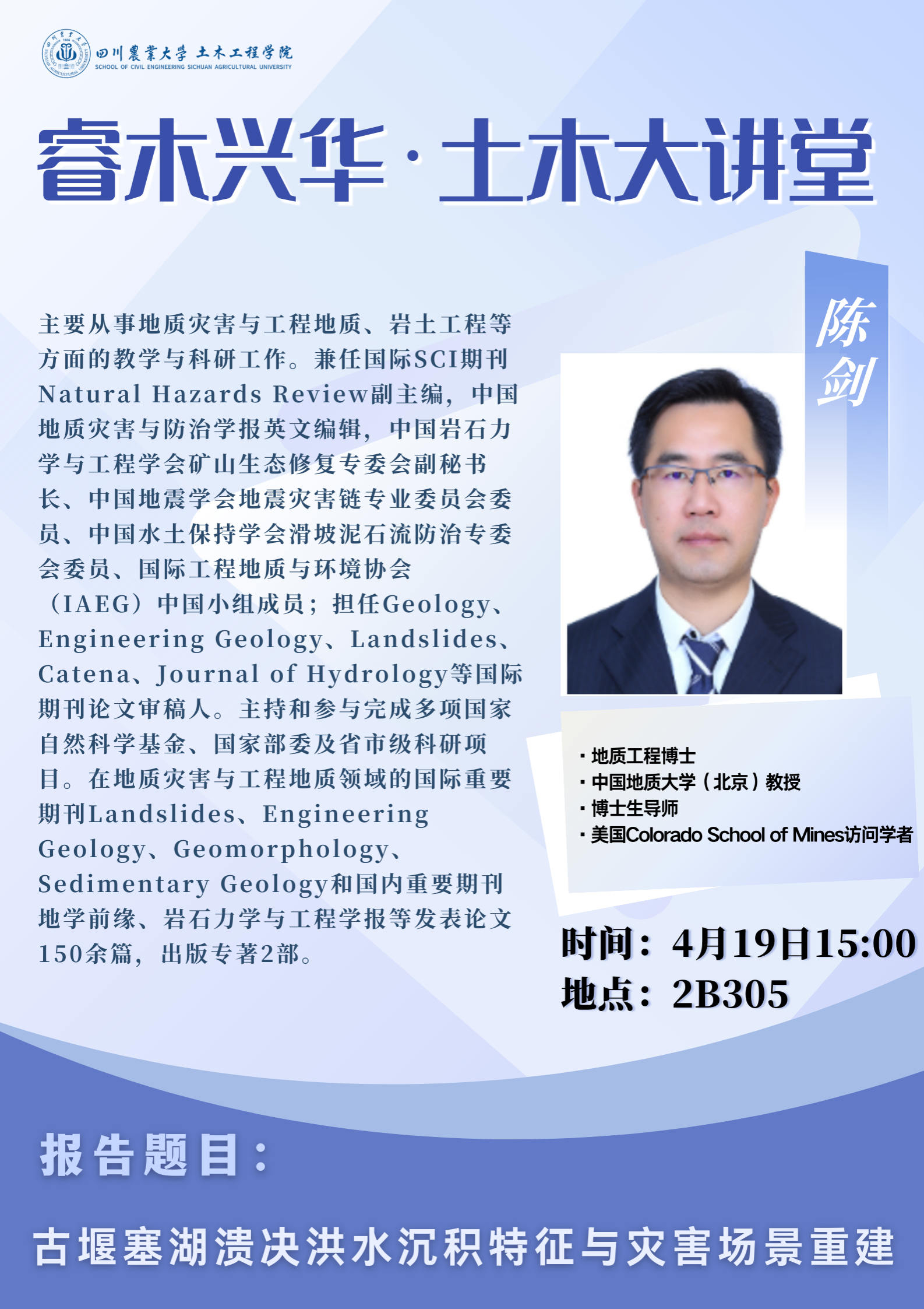 土木大讲堂-古堰塞湖溃决洪水沉积特征与灾害场景重建