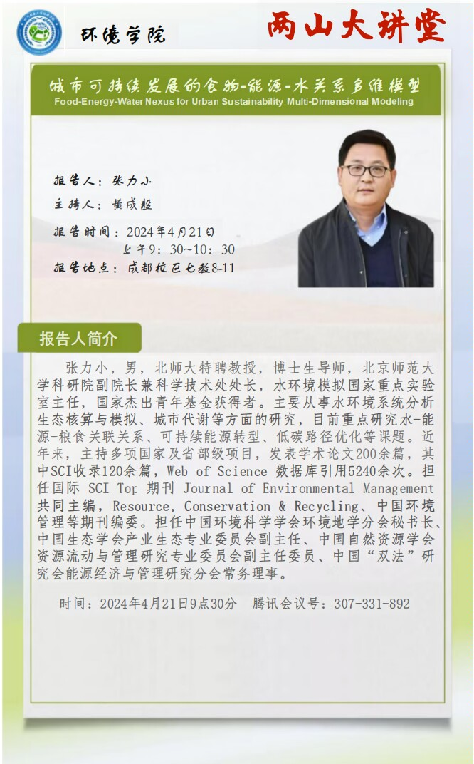 环境学院学术报告—城市可持续发展的食物-能源-水关系多维模型