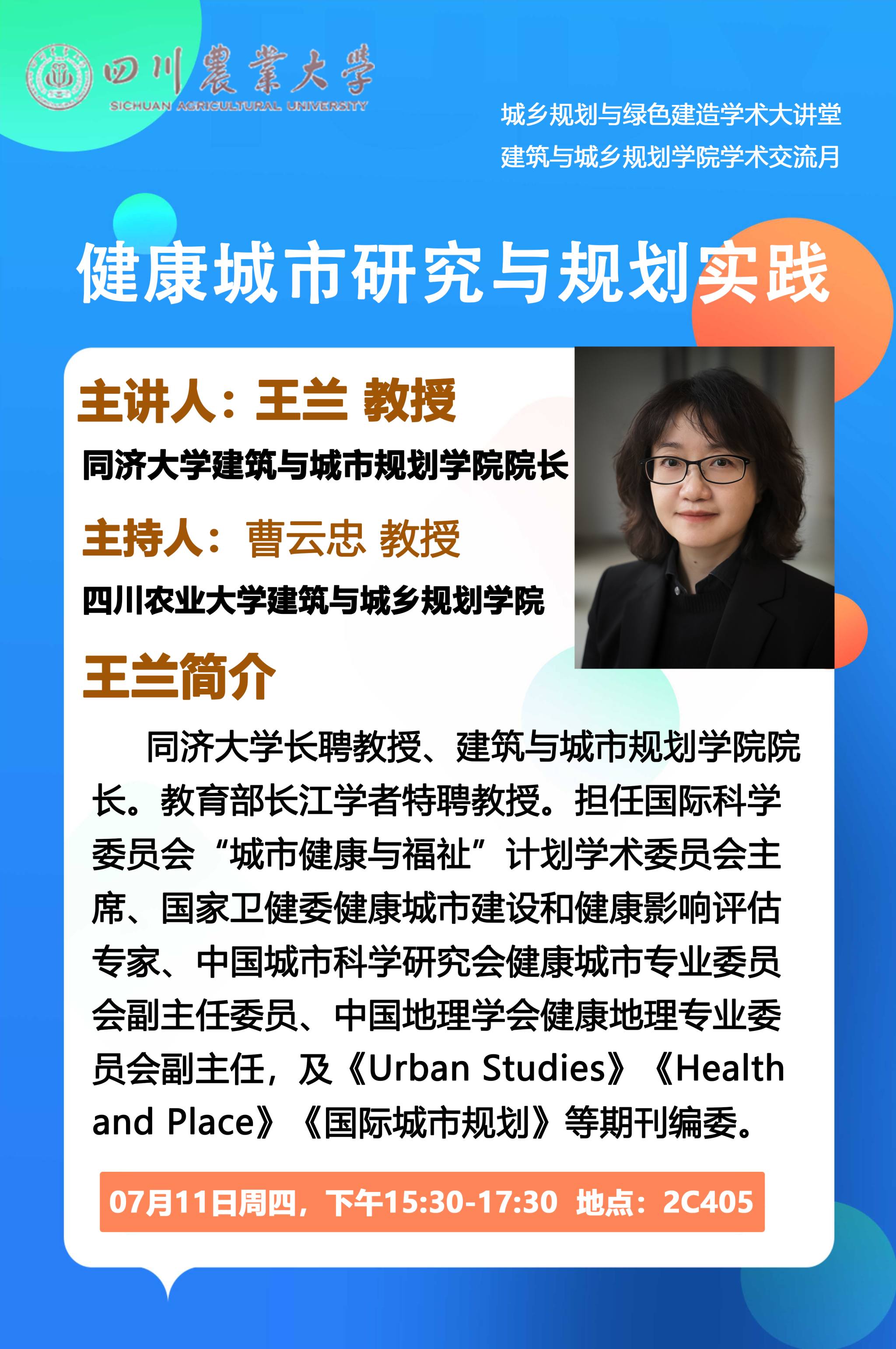 建筑与城乡规划学院学术报告--健康城市研究与规划实践