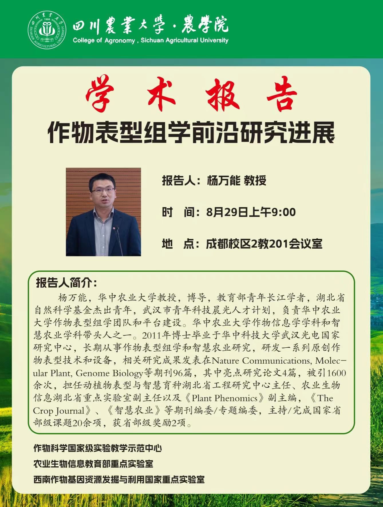 作物学天府论坛(农学院)-作物表型组学前沿研究进展