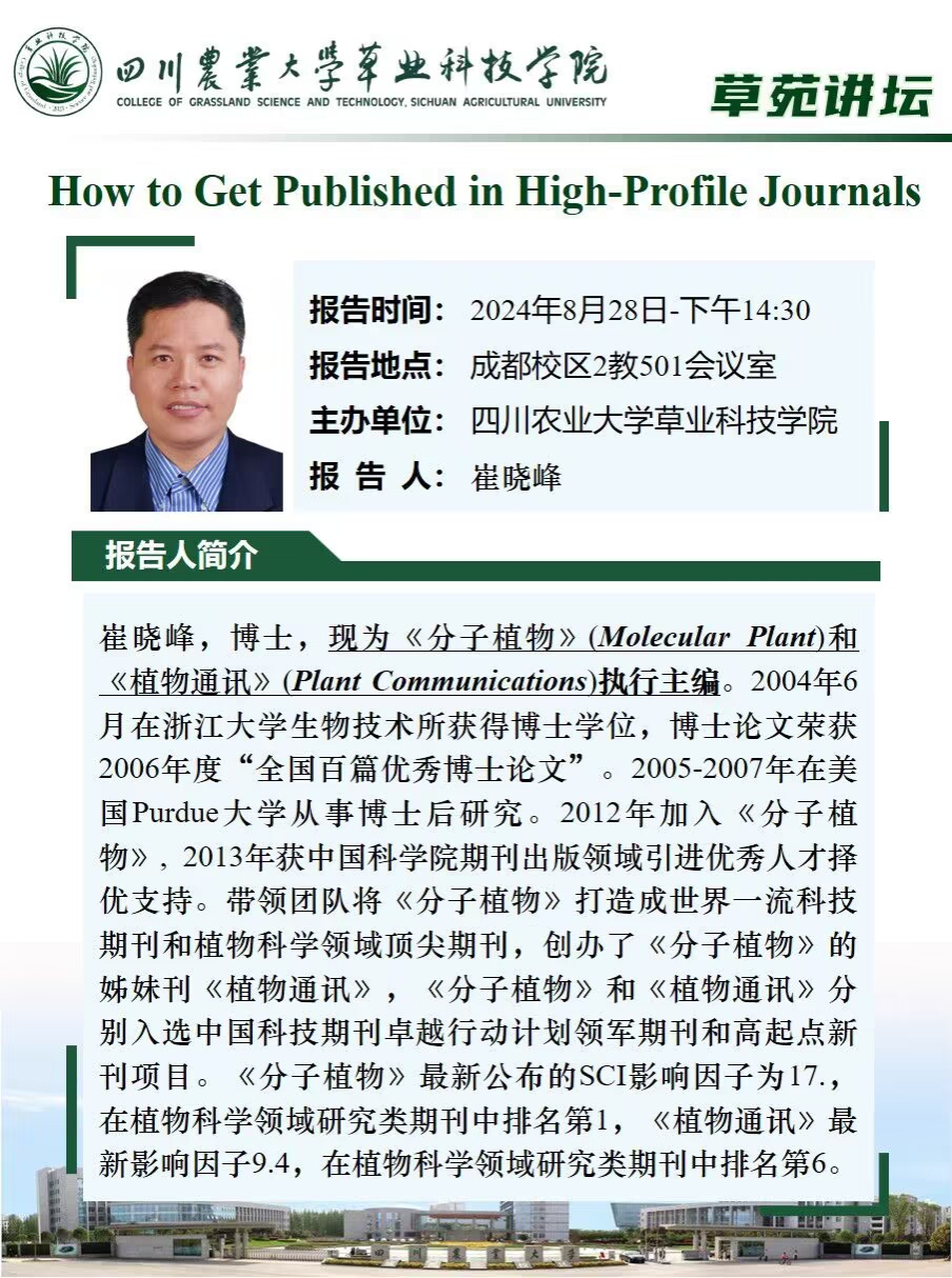 “草苑讲坛”--How to Get published in High-Profile Journals