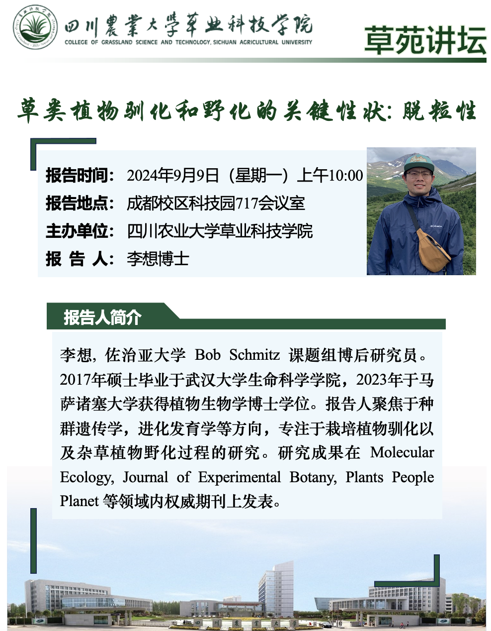 “草苑讲坛”--草类植物驯化和野化的关键性状:脱粒性