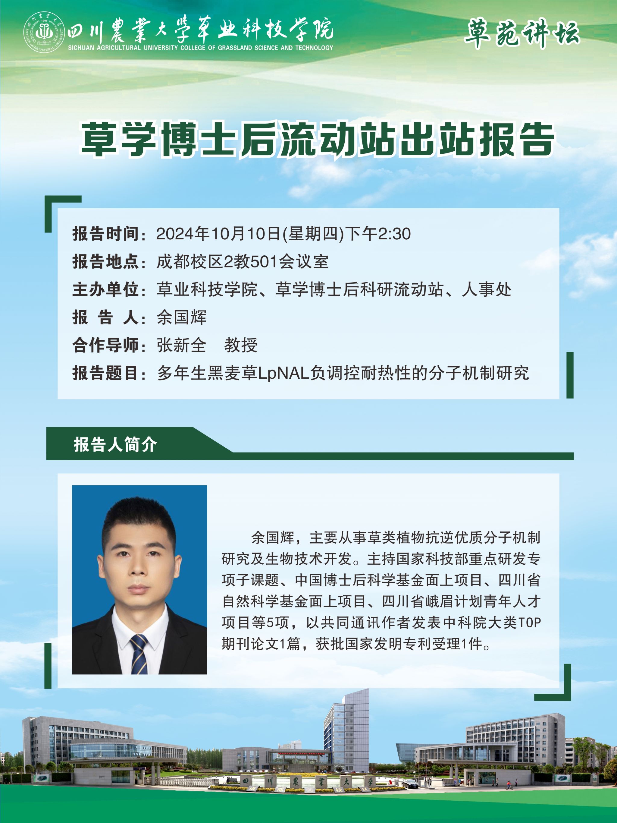 “草苑讲坛”--多年生黑麦草LpNAL负调控耐热性的分子机制研究