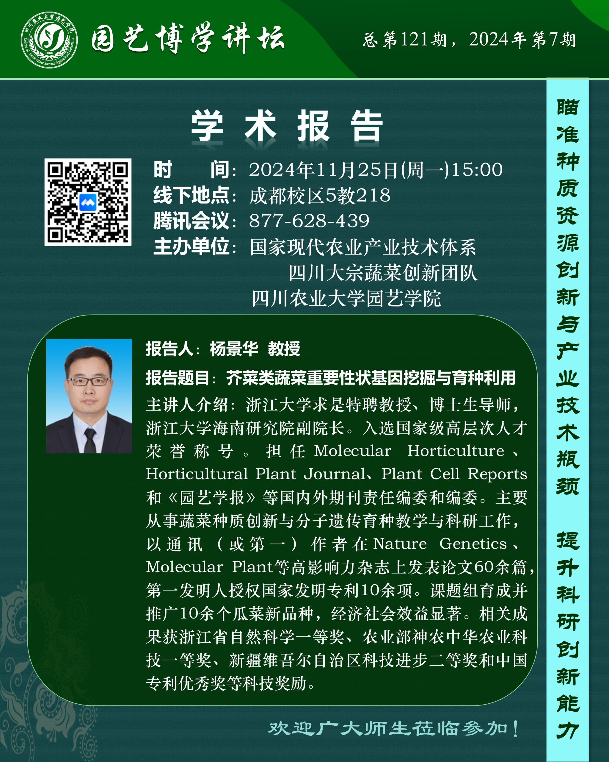 园艺博学讲坛——芥菜类蔬菜重要性状基因挖掘与育种利用