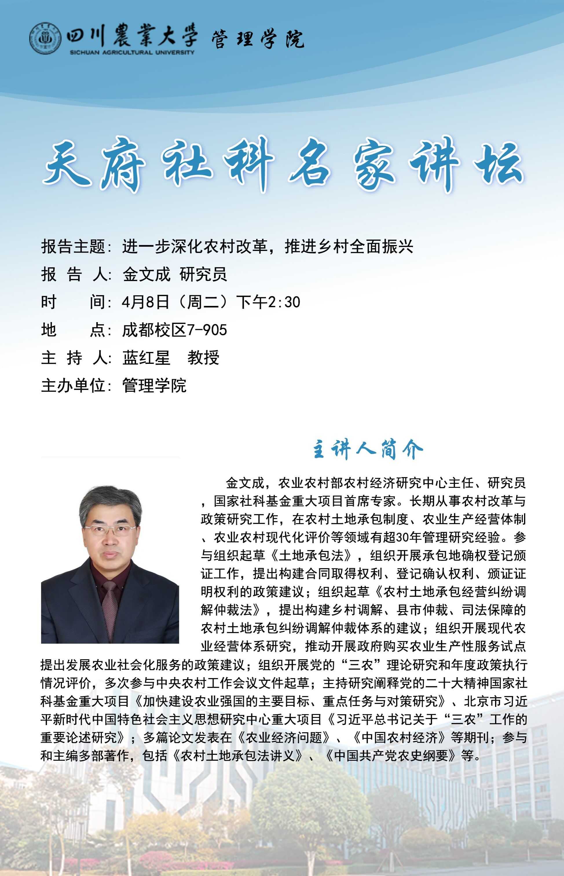 管理学院学术报告——进一步深化农村改革 粉色视频免费版高清全集在线观看,推进乡村全面振兴.