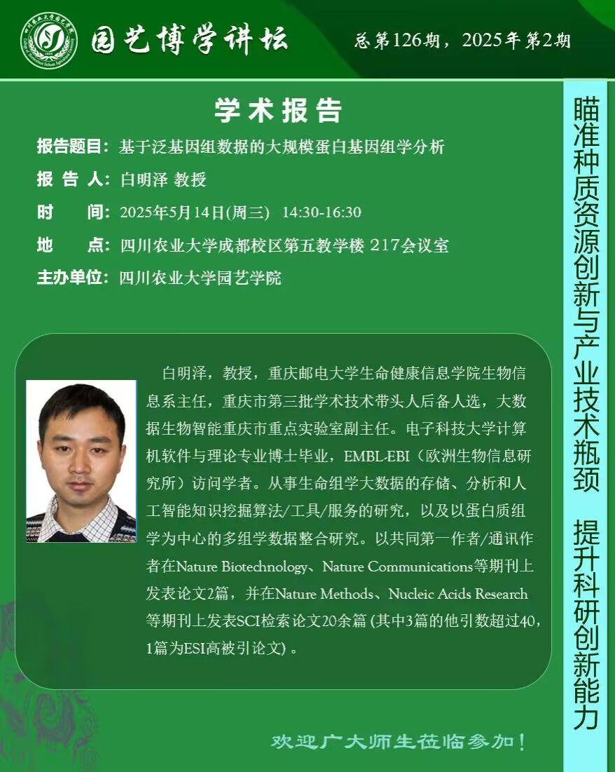 园艺博学讲坛——基于泛基因组数据的大规模蛋白基因组学分析