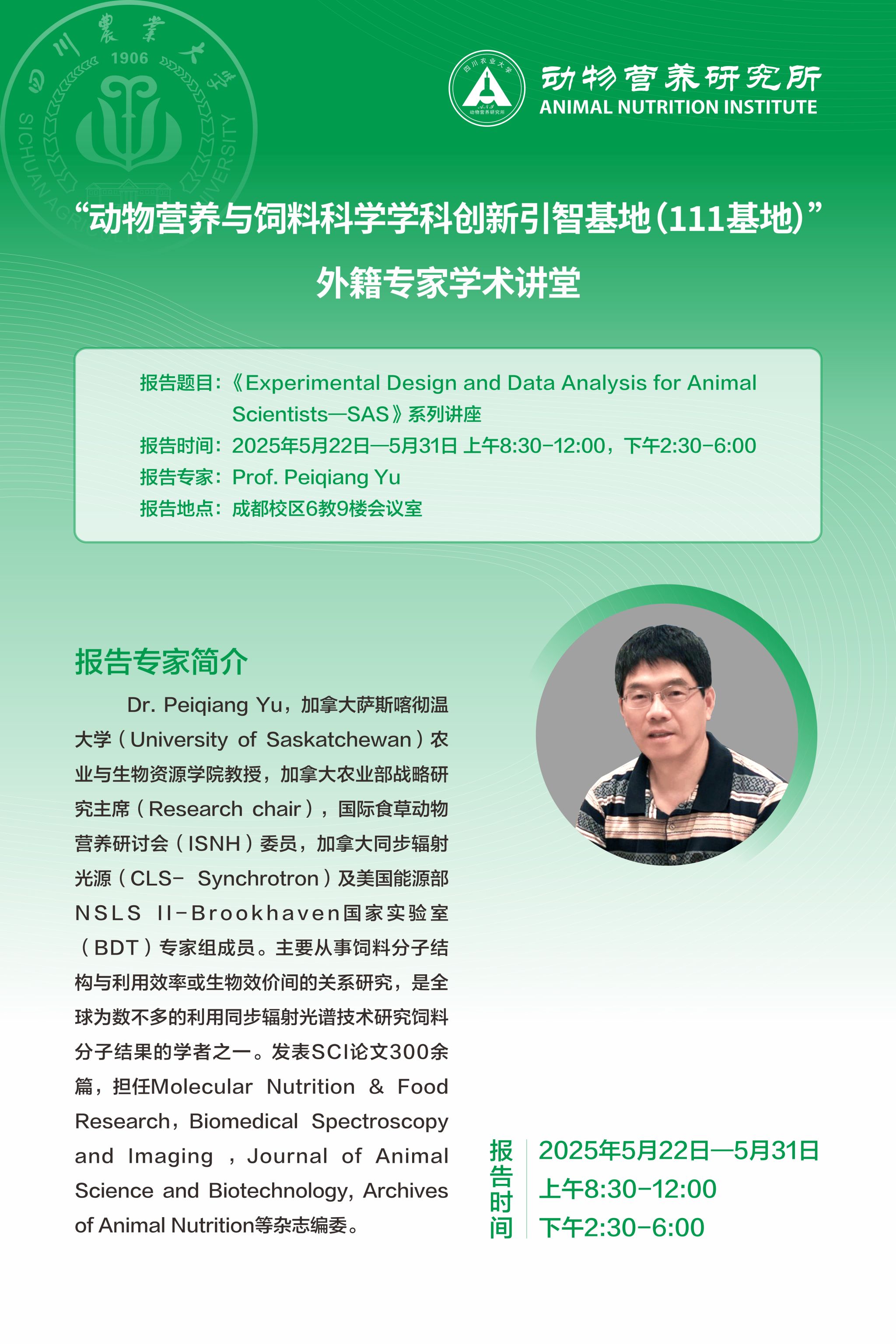 外籍专家学术讲堂-《Experimental Design and Data Analysis for Animal Scientists—SAS》系列讲座