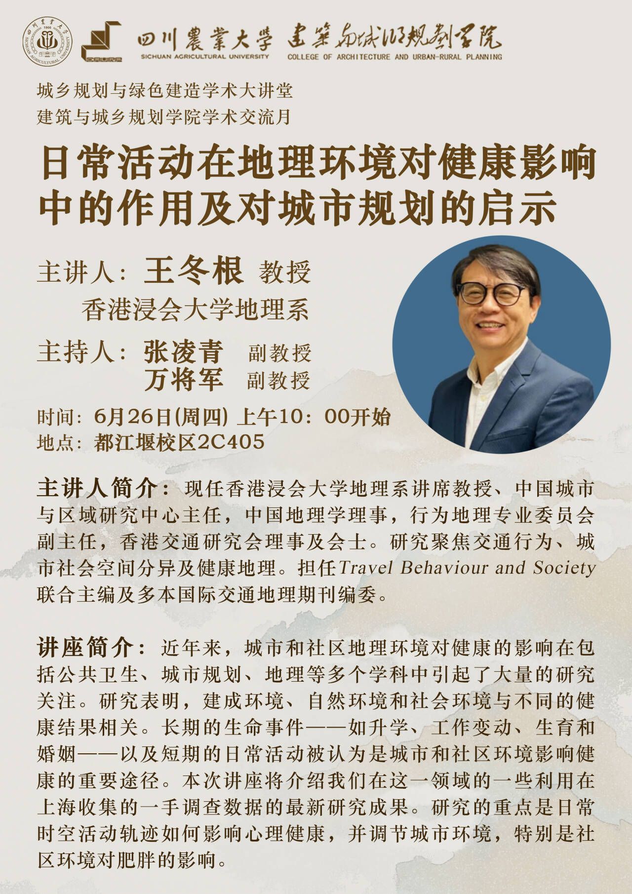 “日常活动在地理环境对健康影响中的作用及对城市规划的启示”讲座活动