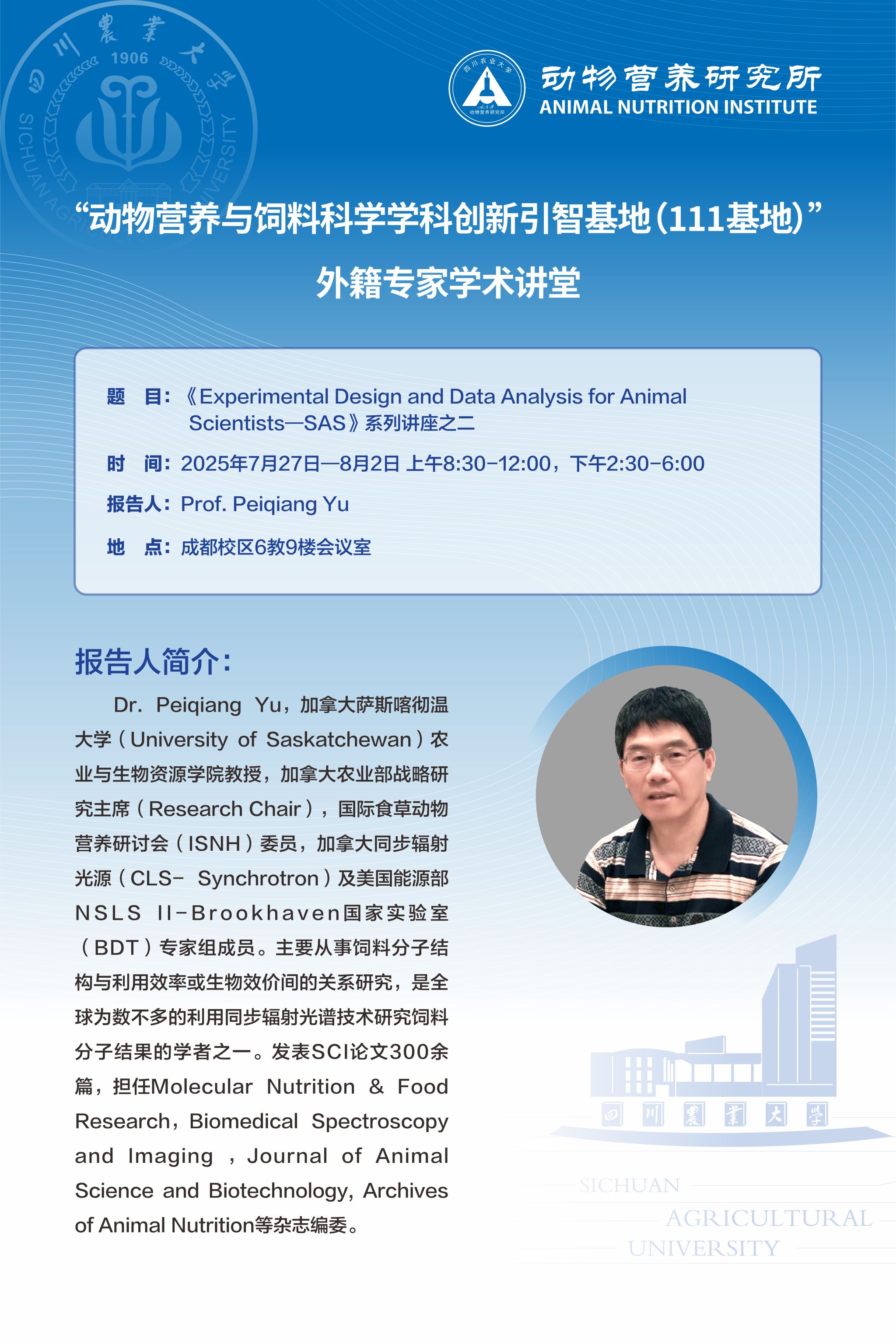 111基地外籍专家学术讲堂:《Experimental Design and Data Analysis for Animal Scientists- SAS 》系列讲座之二