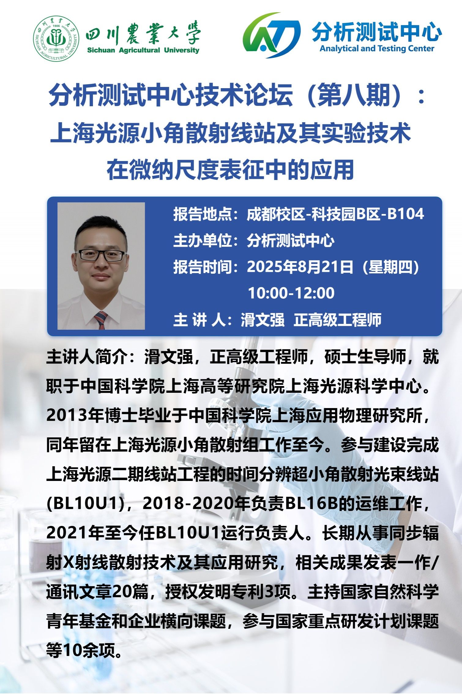 分析测试中心技术论坛(第八期):上海光源小角散射线站及其实验技术在微纳尺度表征中的应用