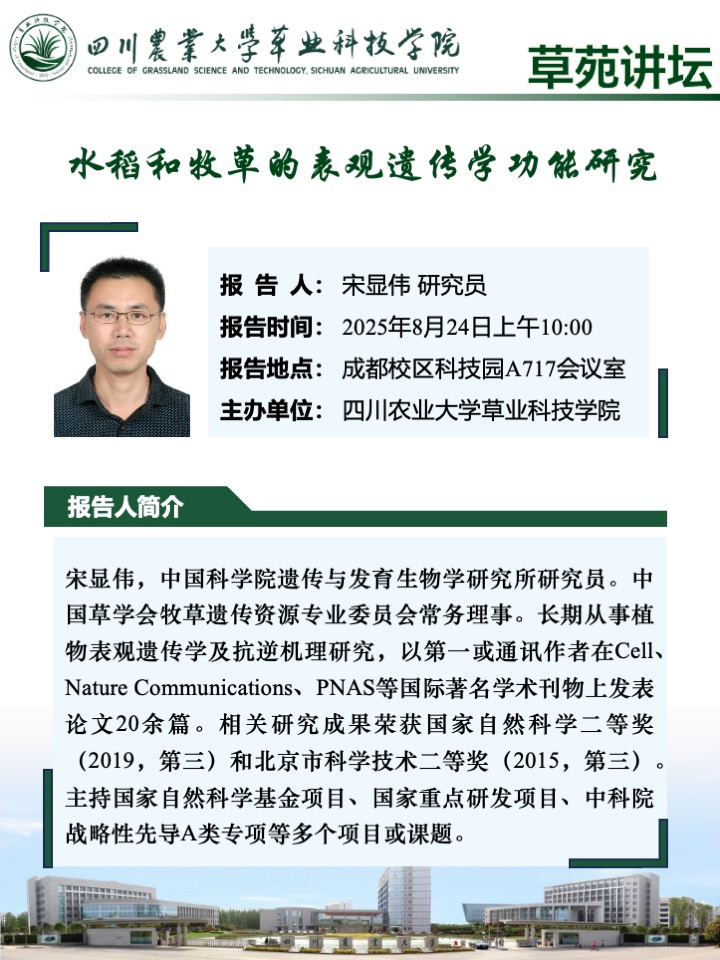 “草苑讲坛”-水稻和牧草的表观遗传学功能研究