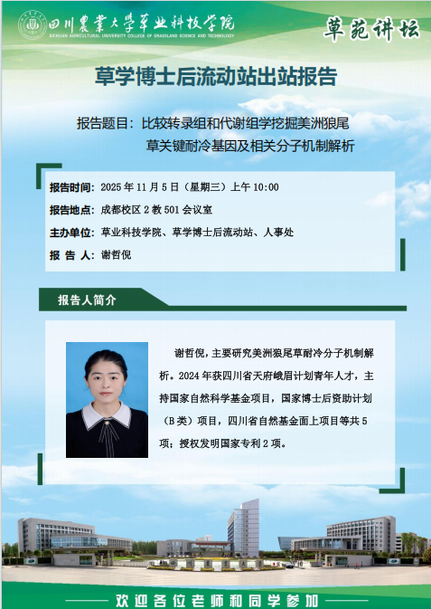 “草苑讲坛”--草学博士后出站报告