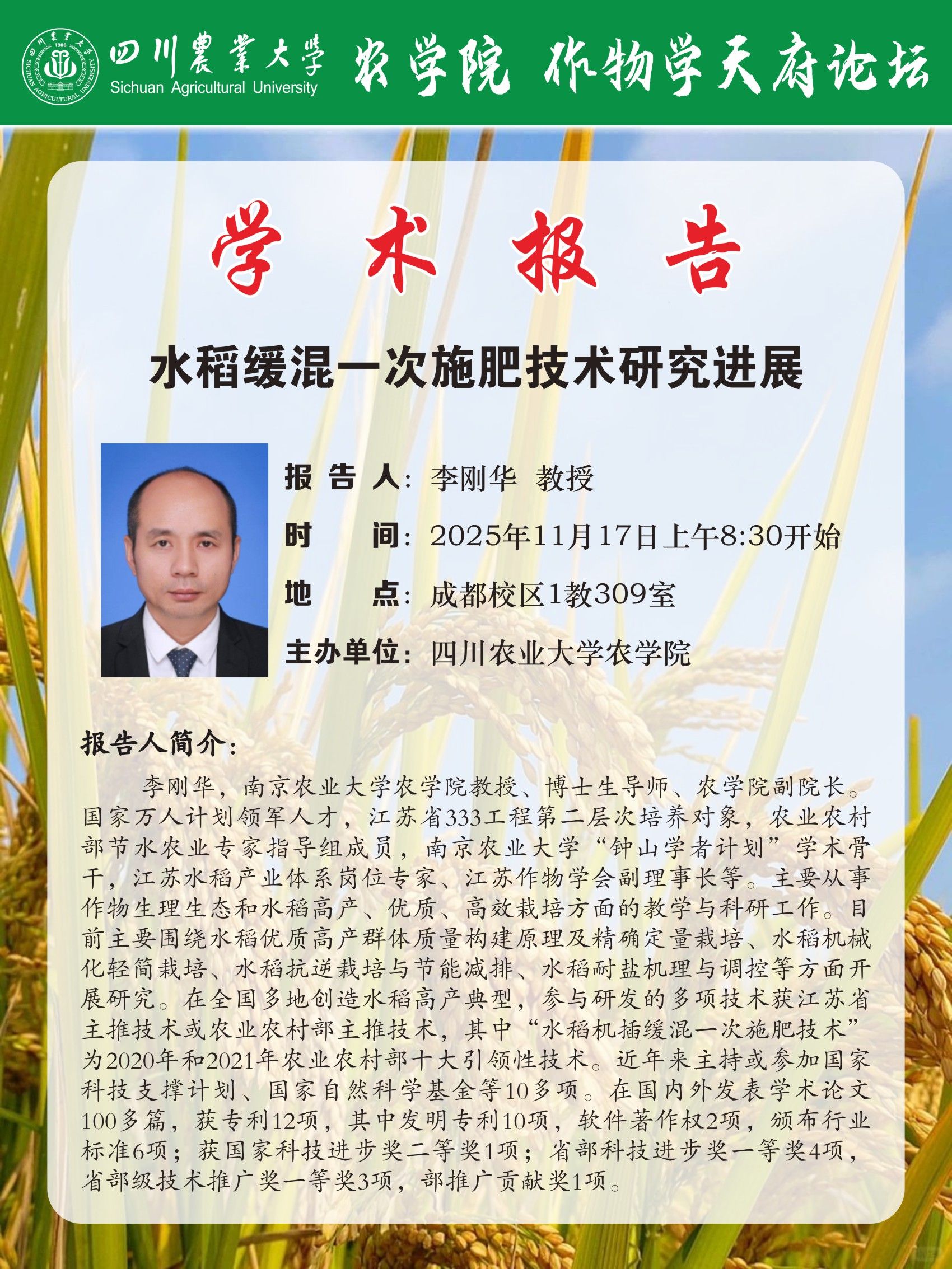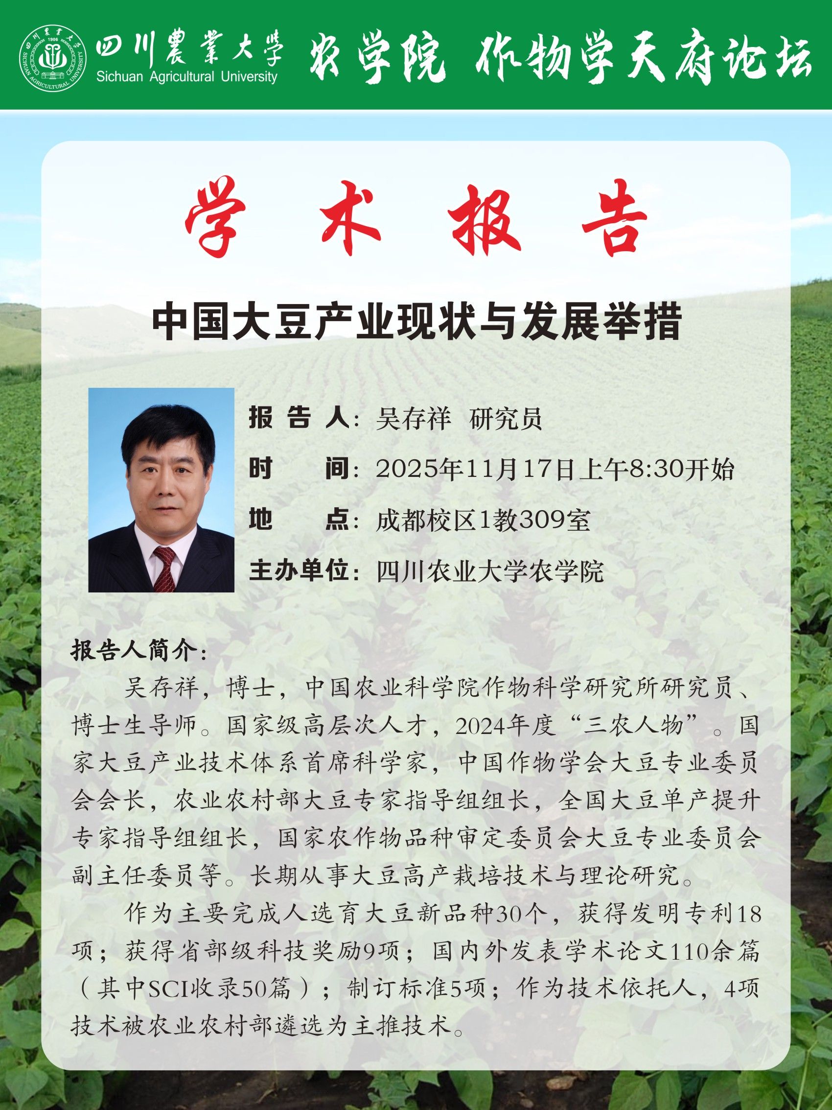 作物学天府论坛(农学院)学术报告