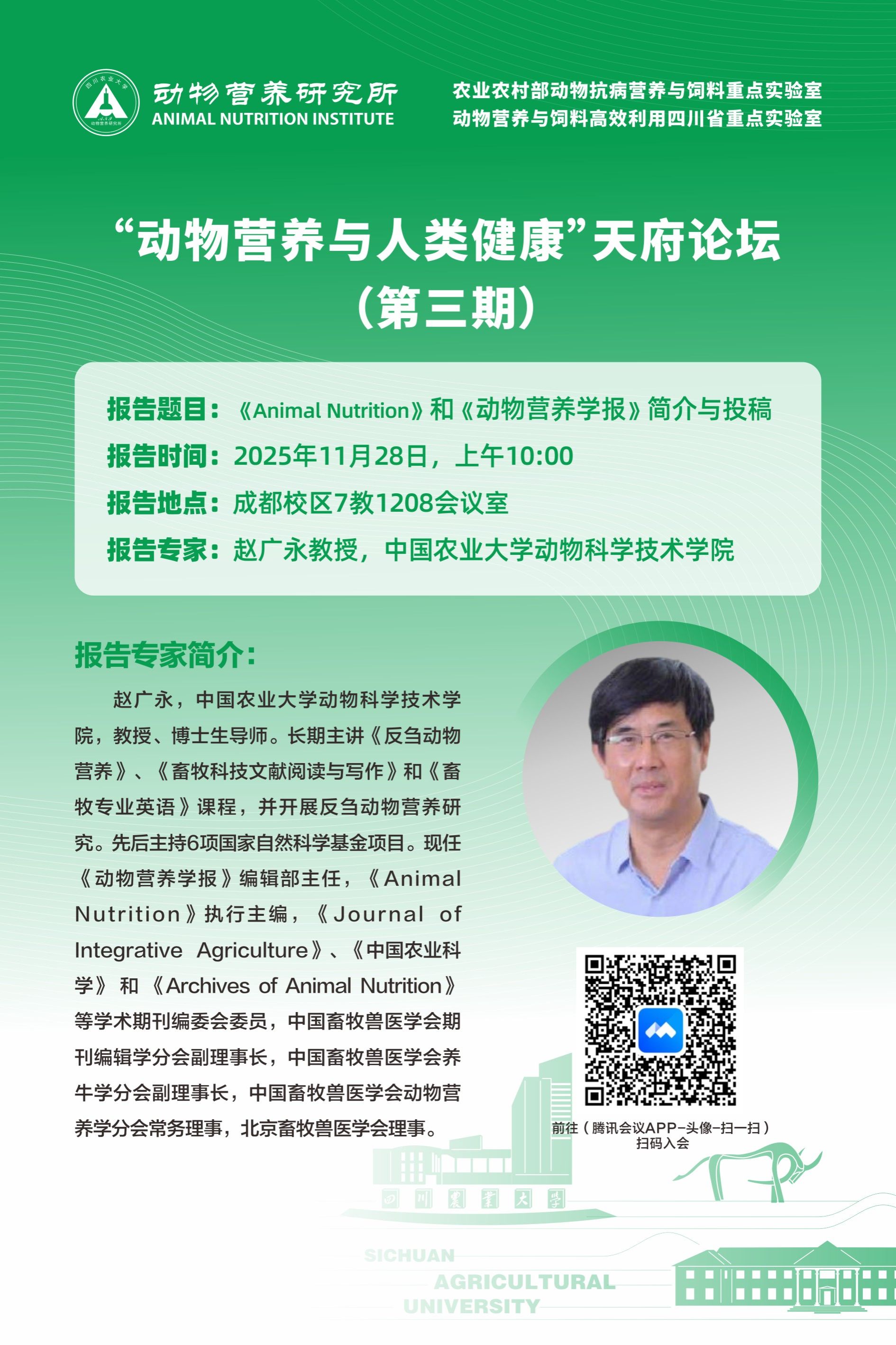 “动物营养与人类健康”天府论坛第三期:《Animal Nutrition》和《动物营养学报》简介与投稿
