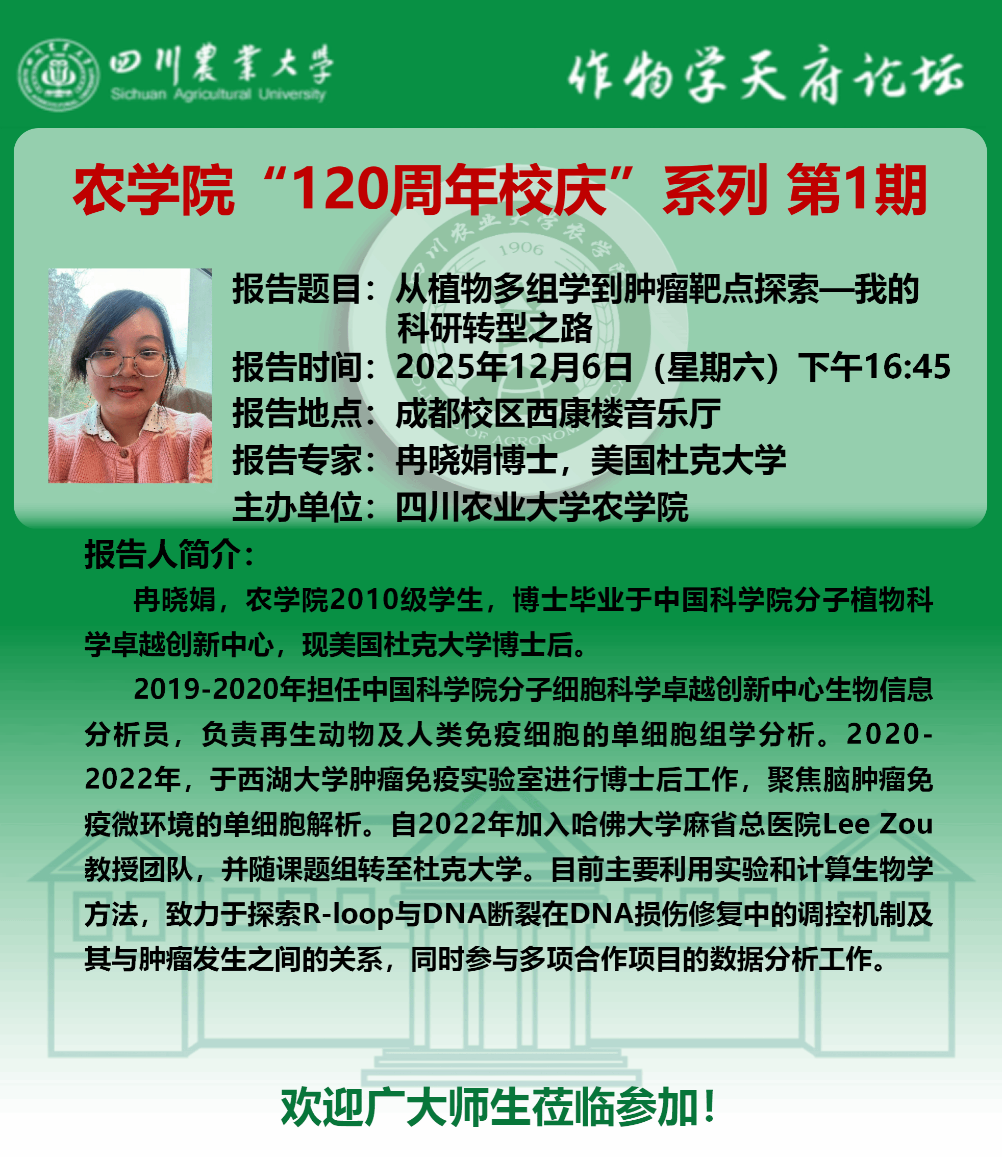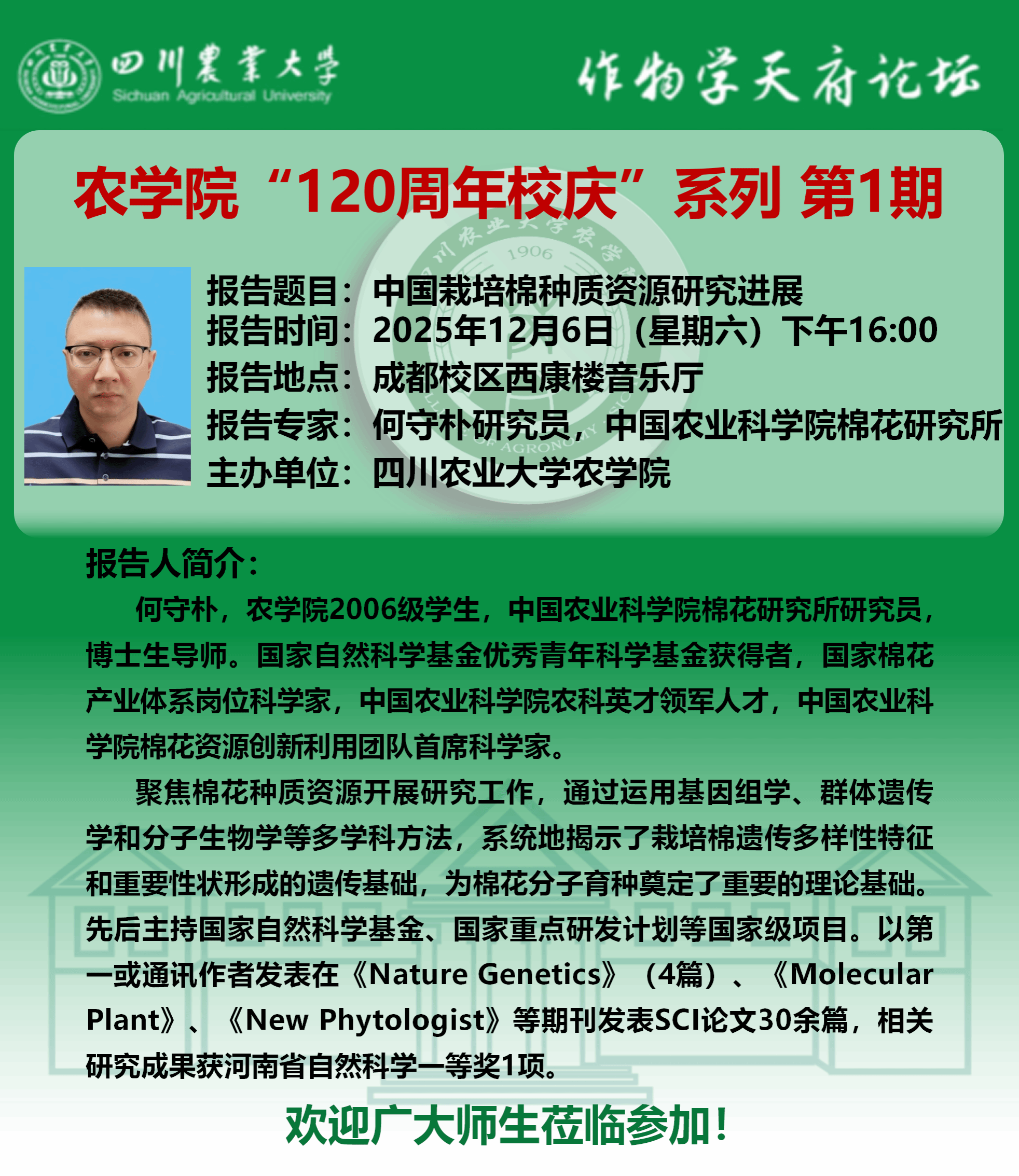 作物学天府论坛-农学院120年校庆系列第一期报告