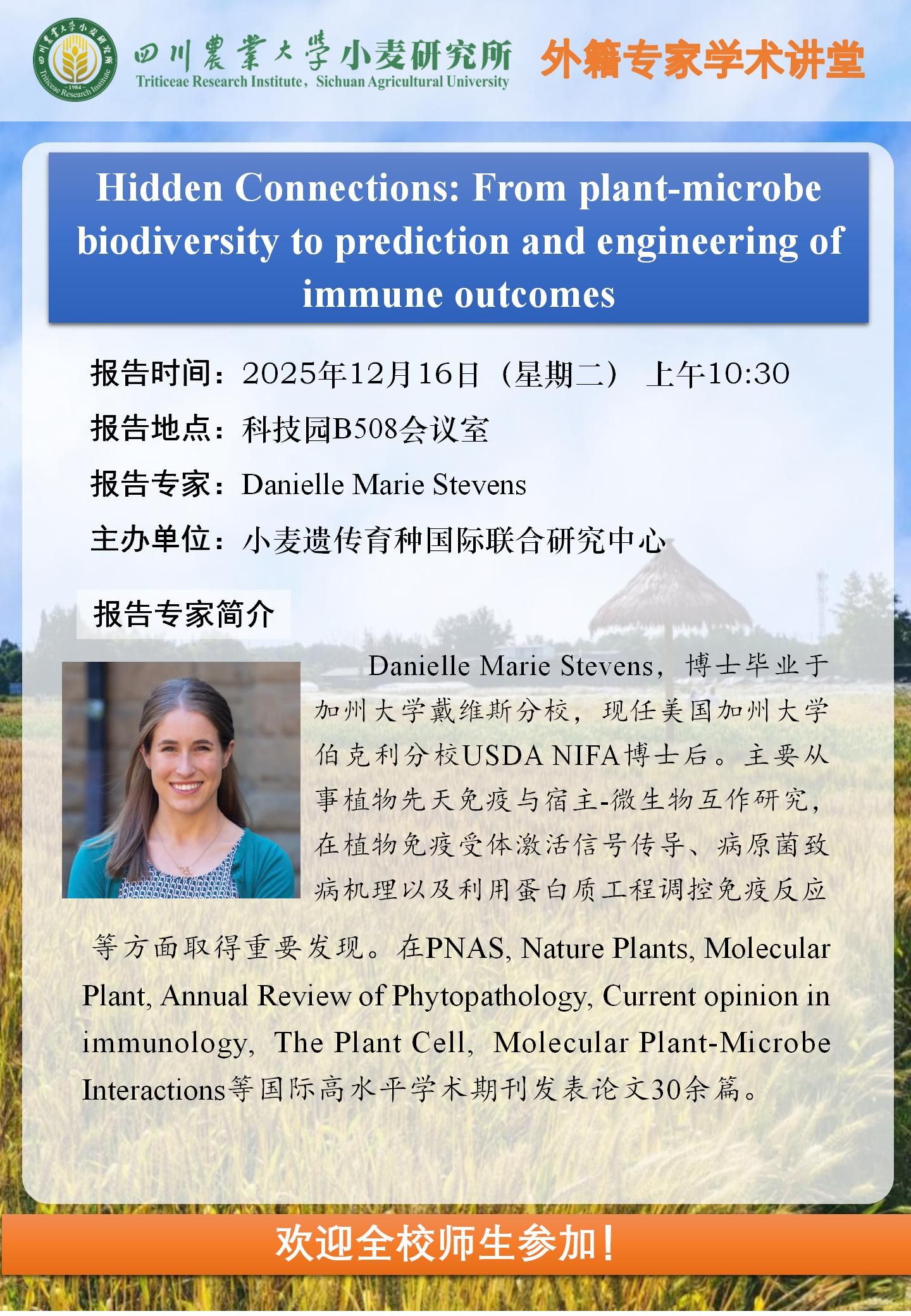 外籍专家学术讲堂-Hidden Connections From plant-microbe biodiversity to prediction and engineering of immune outcomes